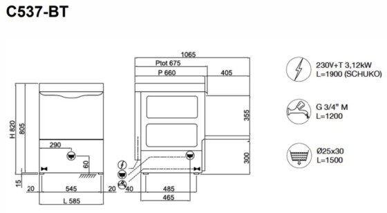 Progettata per contesti ad alta rotazione, la lavastoviglie professionale C537-BT unisce struttura robusta e prestazioni elevate, garantite dalla