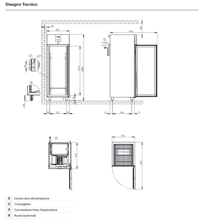 N° accessori in dotazione 3 - Griglia plastificata GN 2/1 530x650 mm 3 - Coppia guide per griglia 530x650 mm (Mod. 700/1400)